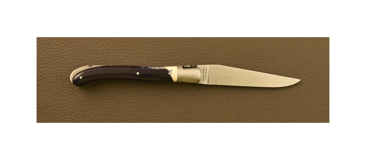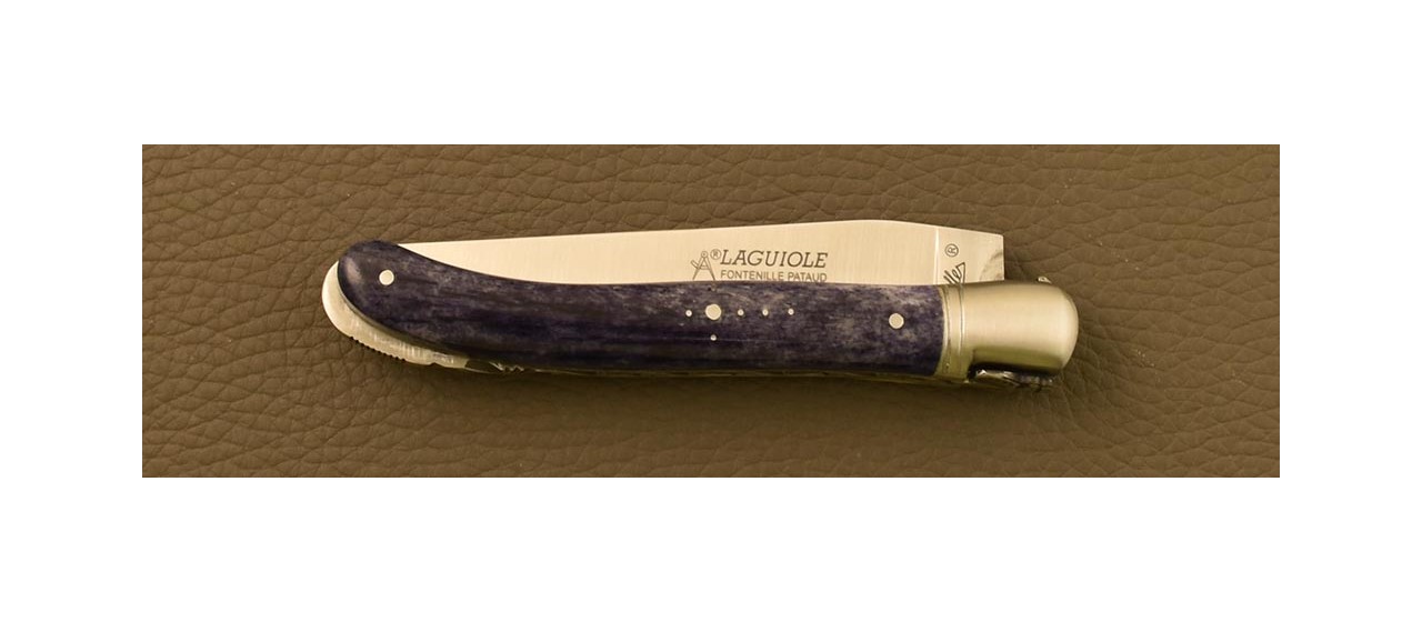 Tecnical tips: The 'Bee' spring with its lock-back system is made from 3mm thick stainless steel Z20c13. A solid hardenned bladestop is provided: that helps maintain the edge of the blade. The traditional bee is solid and forged into the spring. The spring and bee are then hand-chased with a file: this denotes artisan quality, unlike inexpensive mass market products that have welded springs and are machine decorated. These details create a unique Laguiole knife, making each knife one of a kind.