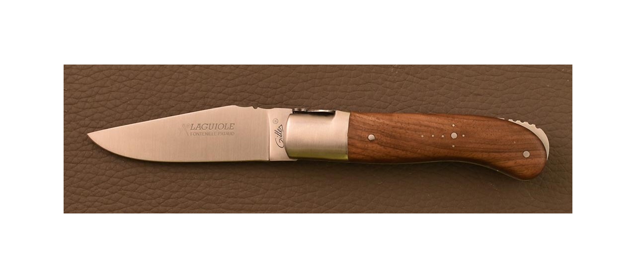 If you find the Laguiole Sport too big, then the Laguiole Gentleman is for you. Its smaller size (10.5cm instead of 13cm) makes it easier to carry. That said, the Laguiole Gentleman is still is an efficient and fairly wide and tough knife. A solid blade stop is provided to hold a long life edge.
