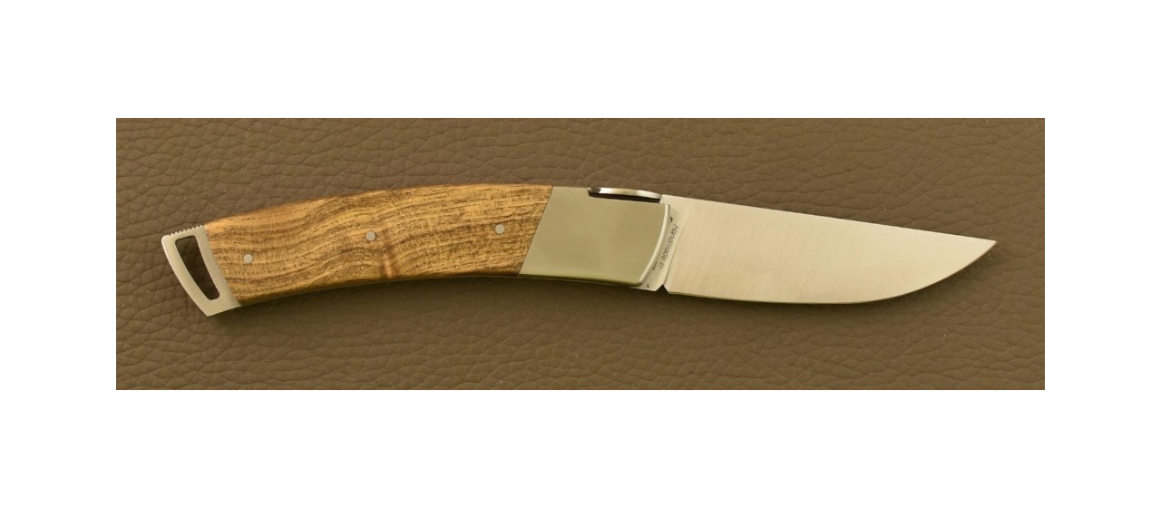 Tecnical tips : The ' Bee 'spring with its lock-back system is made from 3 mm thick stainless steel Z20c13. A solid hardenned bladestop is provided : That helps maintain the edge of the blade. The bee is solid and forged into the spring. The spring and bee are then hand-chased with a file : this denotes artisan quality, unlike inexpensive mass market products that have welded springs and are machine decorated. These details create a unique Le Thiers knife, making each knife one of a kind.