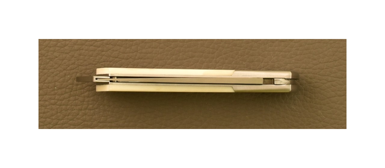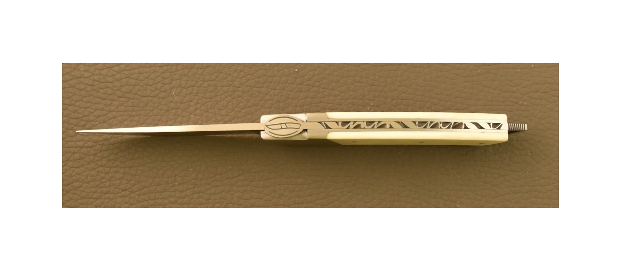 Technical tips: The 'Bee' spring with its lock-back system is made from 3mm thick stainless steel Z20c13. A solid hardenned bladestop is provided: that helps maintain the edge of the blade. The bee is solid and forged into the spring. The spring and bee are then hand-chased with a file: this denotes artisan quality, unlike inexpensive mass market products that have welded springs and are machine decorated. These details create a unique Le Thiers knife, making each knife one of a kind.