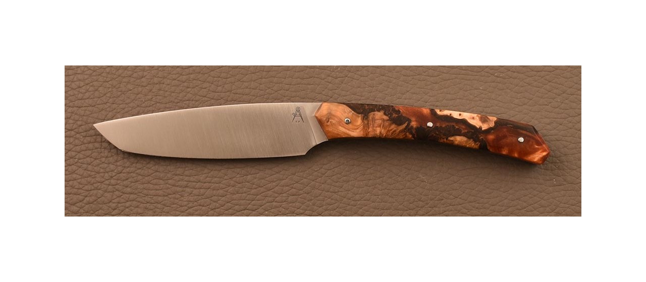 To make this piece truly unique, we offer exceptional customization: an engraving created by removing material directly from the knife's tang. This deep marking in the steel, located on the spine of the handle, offers a discreet and eternal signature.