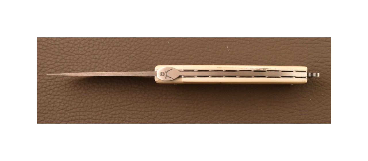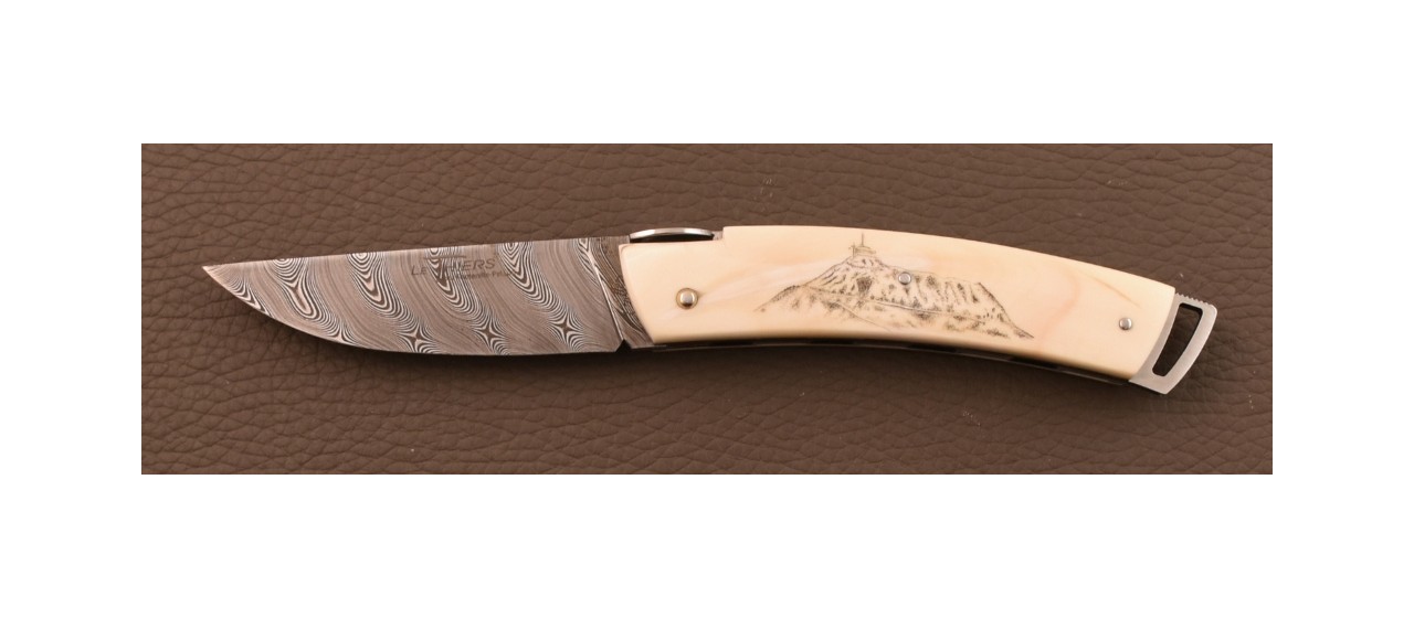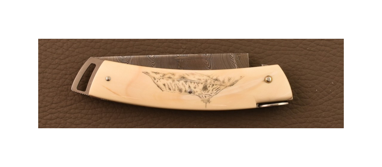 Handle : Real warthog tooth (alternative ivory). each knife requires one whole tooth which makes definitly one of a kind items. Scrimshaw handmade : Puy-de-Dôme.