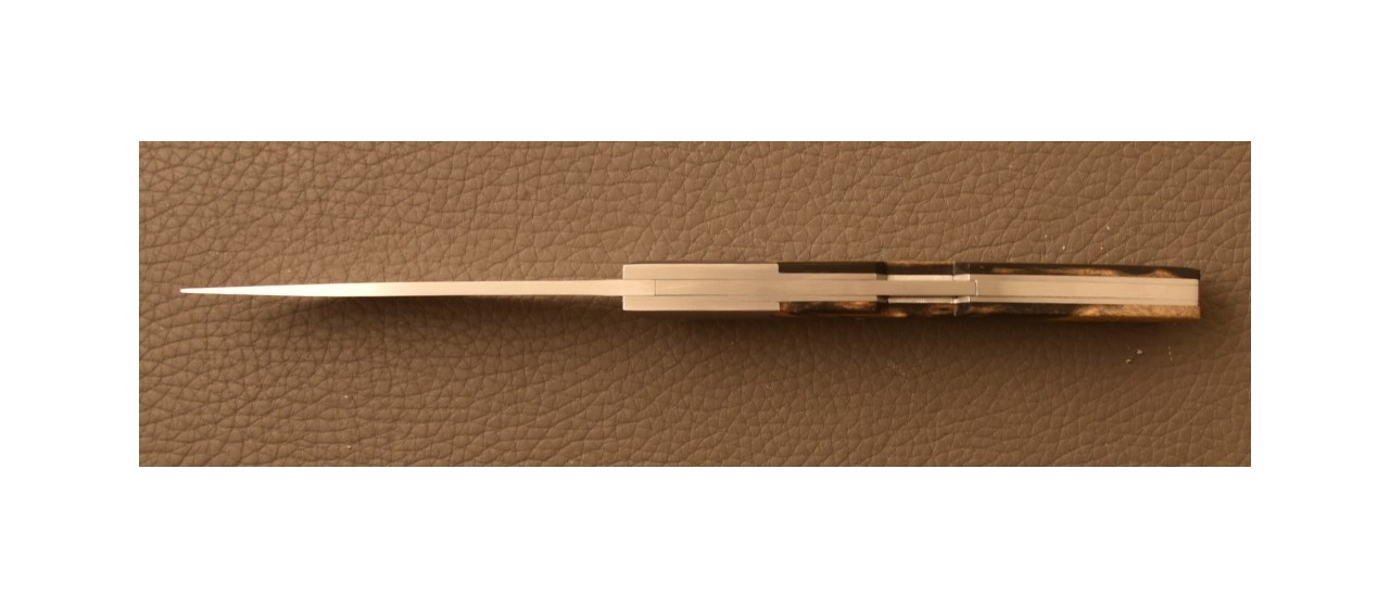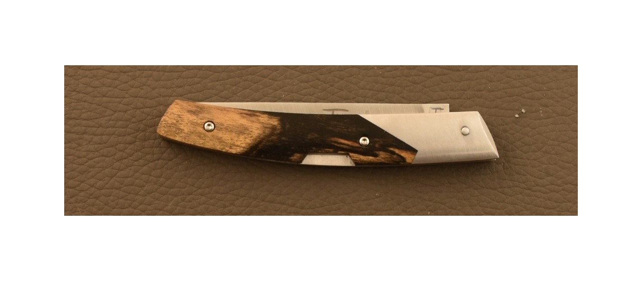 Designed in close collaboration with Jean-Pierre Suchéras, twice "Meilleurs Ouvriers de France" (highest reward of French craftsmanship), le Thiers® Advance by Fontenille Pataud is a forward-looking pocket knife. Thanks to its sleek design and efficient blade locking system, this knife will find its perfect place in your everyday life. The superior RWL34 steel used for the blade keeps its cutting edge longer.