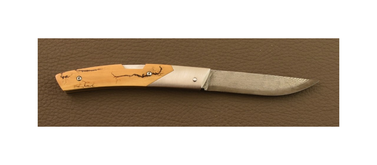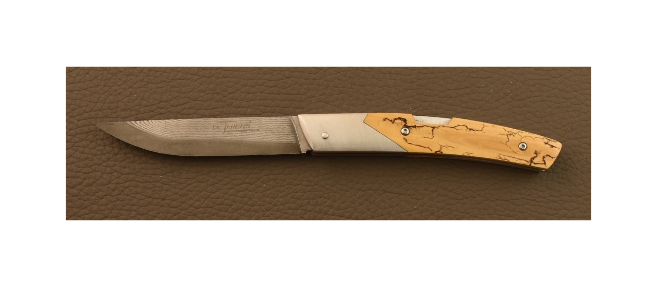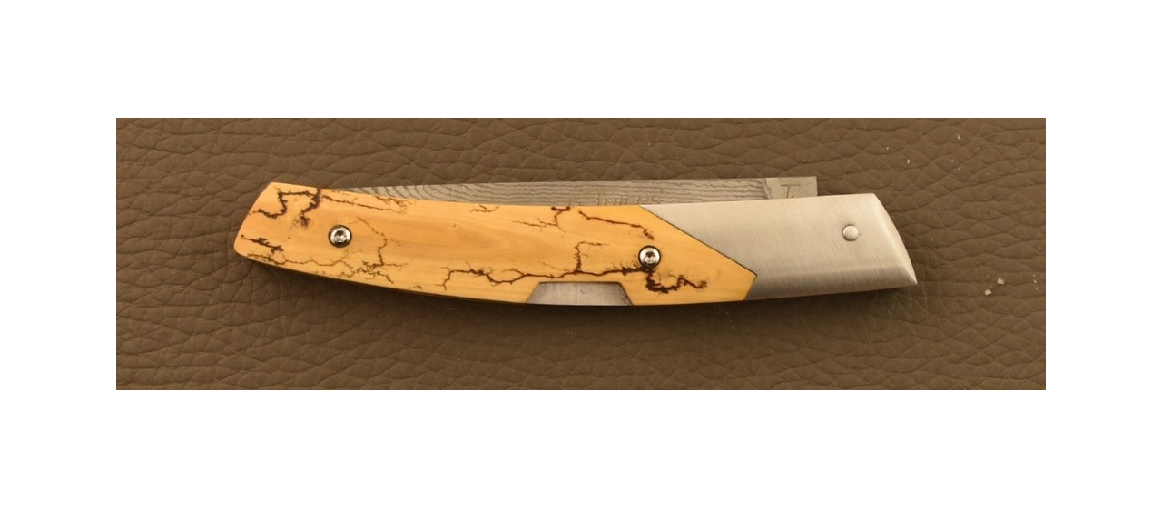 Designed in close collaboration with Jean-Pierre Suchéras, twice "Meilleurs Ouvriers de France" (highest reward of French craftsmanship), le Thiers® Advance by Fontenille Pataud is a forward-looking pocket knife. Thanks to its sleek design and efficient blade locking system, this knife will find its perfect place in your everyday life. Suminagashi sandwich steel consists of a VG10 core covered on each side by 33 layers of stainless steel: efficient cutting and one of a kind design.