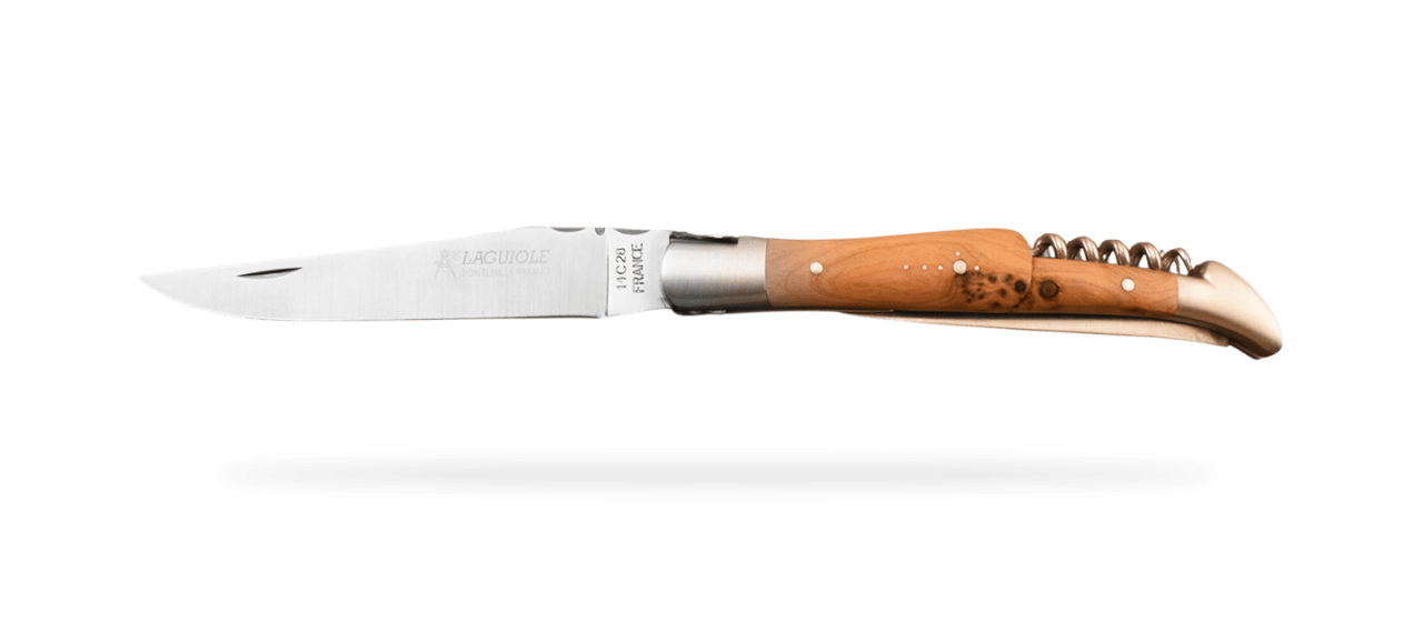 Matériaux Nobles : Retrouvez des manches en bois précieux (genévrier, ébène) ou en corne qui confèrent à votre Laguiole un caractère unique et une durabilité exceptionnelle.