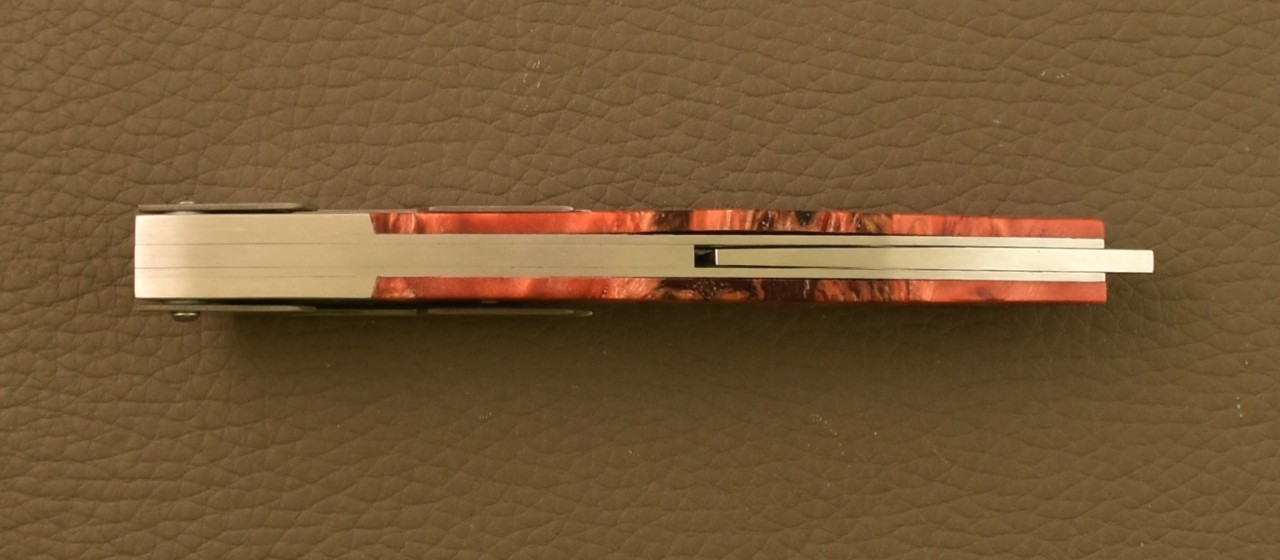 Lame : Acier inoxydable Suédois 14C28N épaisseur 3mm au talon. Dureté : 58-59 Hrc. Grâce à son excroissance, la lame est très facile à ouvrir. Son tranchant est lisse permettant une coupe nette et propre de la capsule