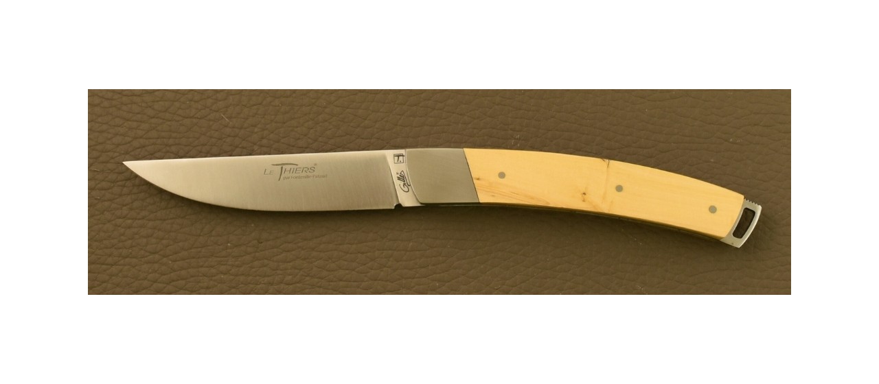 Le mécanisme de précision du couteau Le Thiers® est très souple mais vous bénéficierez aussi d’une lame solide et parfaitement bloquée quand elle est ouverte pour une utilisation en toute sécurité.
