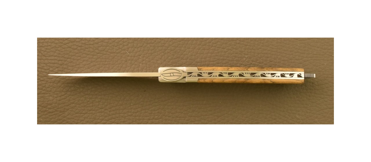 Le mécanisme de précision du couteau Le Thiers® est très souple mais vous bénéficierez aussi d’une lame solide et parfaitement bloquée quand elle est ouverte pour une utilisation en toute sécurité.