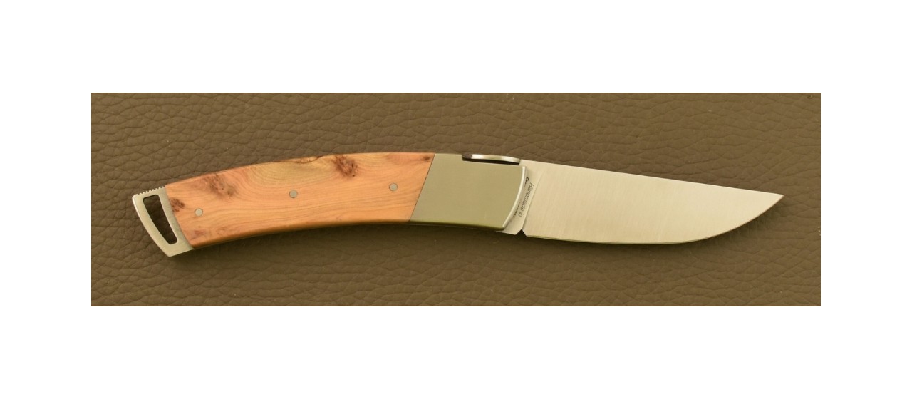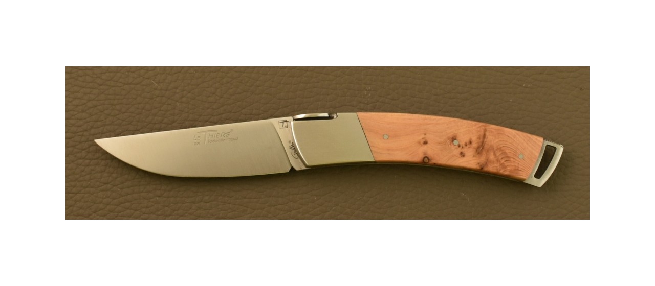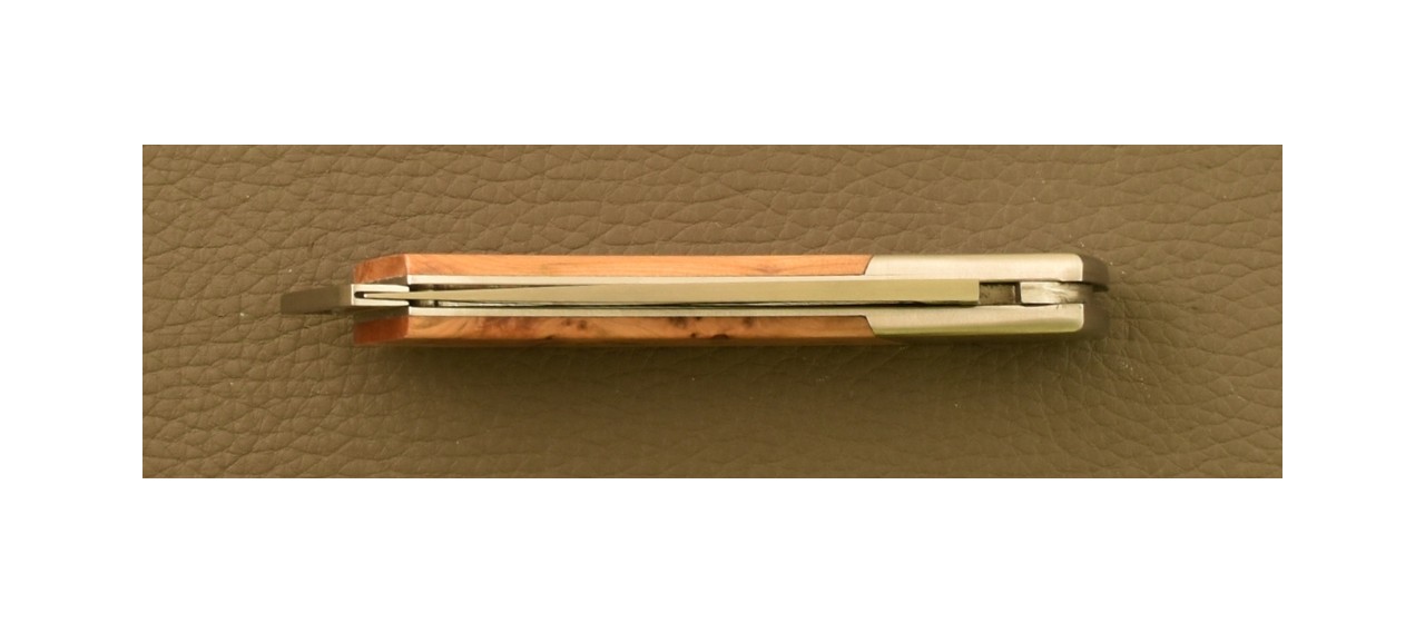 Manche : loupe de Genévrier des Cévennes. Bois moucheté et odorant qui se patine très bien dans le temps.