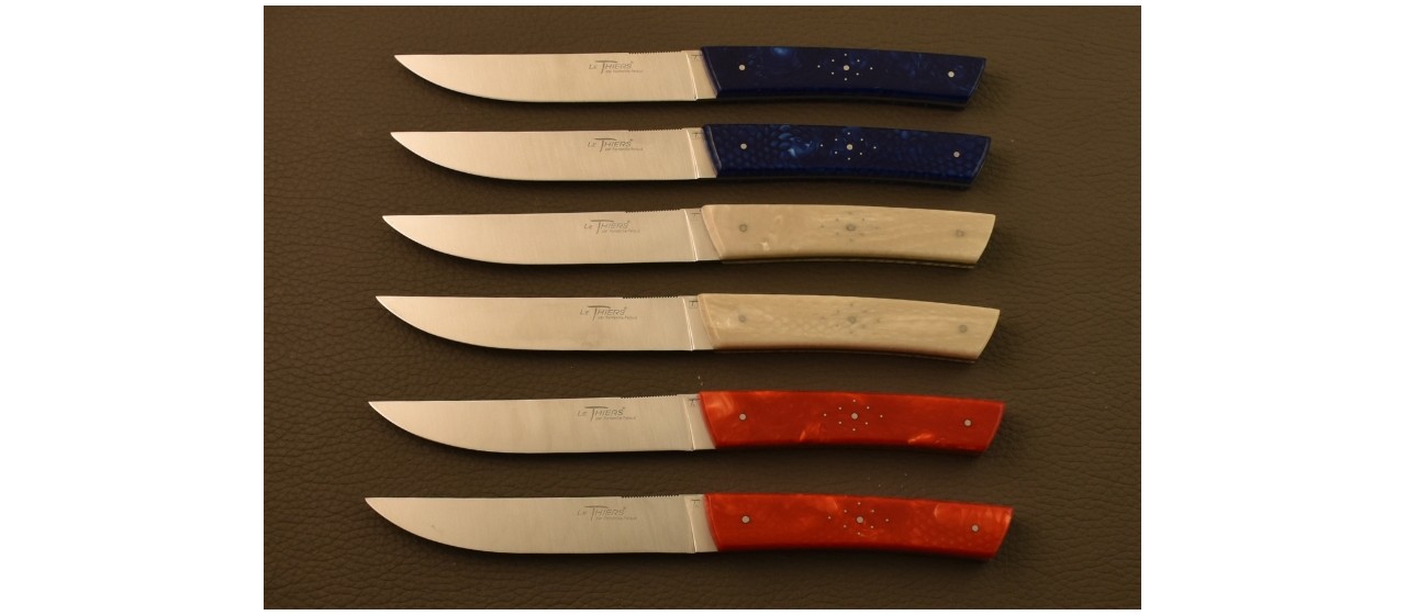 Nous sommes fiers de pouvoir dire que nos couteaux se transmettent, et s’offrent de génération en génération, d’où la conception de notre gamme de couteaux et couverts entièrement fabriqués dans notre atelier en France.